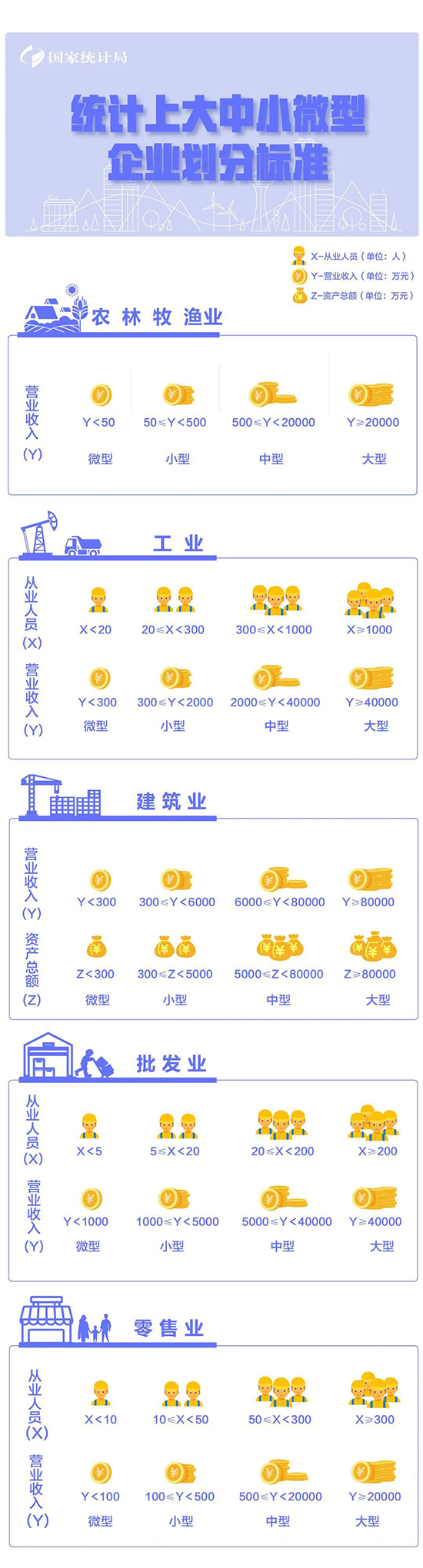 小编根据《关于印发中小企业划型标准规定的通知》(工信部联企业〔2011〕300号)和《关于印发<统计上大中小微型企业划分办法(2017)>的通知》(国统字〔2017〕213号)等规定,做了汇总,教您一图看懂大中小微型企业划分标准。