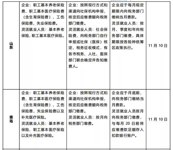 附:各省市社保税征的政策细则
