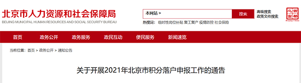 关于开展2021年北京市积分落户申报工作的通告