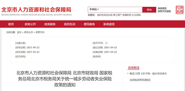 北京市人力资源和社会保障局关于印发《北京市失业保险金申领发放实施办法(试行)》的通知